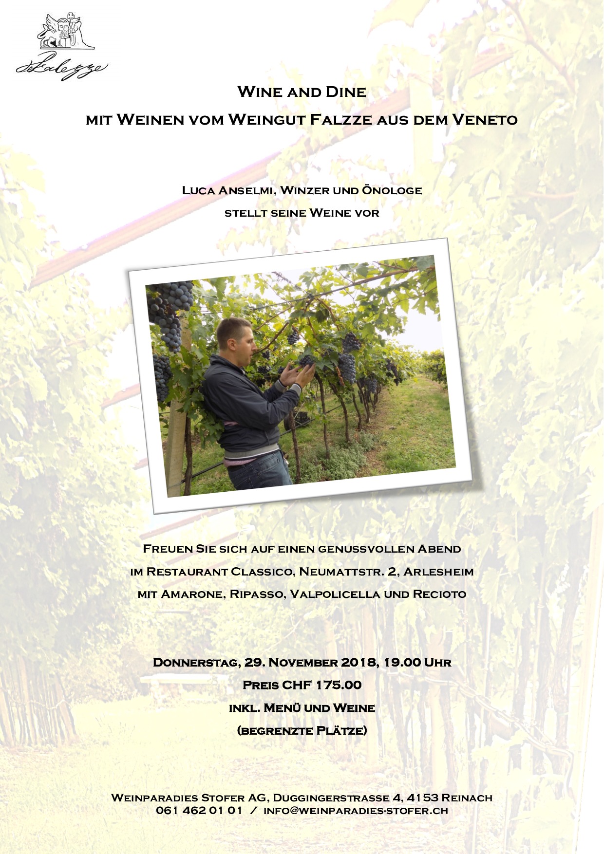 Freuen Sie sich auf einen Genussvollen Abend mit Weinen vom Weingut Falezze aus dem Veneto.